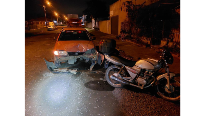 Às 18h33min, a guarnição foi acionada para atender uma colisão entre um carro e uma moto na rua Clemente Procopiak, bairro Campo da Água Verde em Canoinhas.