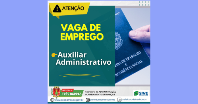 O posto do SINE de Três Barras informa que está intermediando a contratação de um profissional para cargo temporário de AUXILIAR ADMINISTRATIVO.
