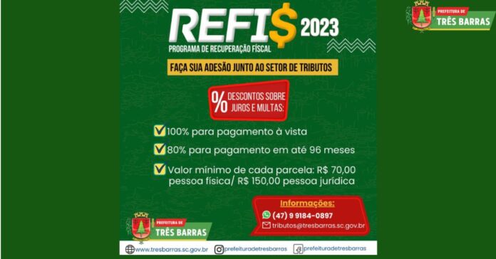 Atenção contribuintes inscritos em dívida com o município de Três Barras e que buscam uma nova uma chance de regularizar a situação dos seus débitos com o fisco.