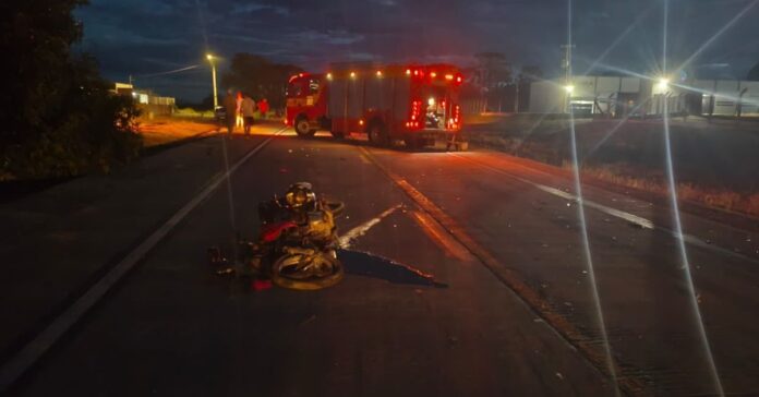 O Corpo de Bombeiros Militar de Canoinhas foi acionado, via COBOM, por volta das 19h21, dessa quinta-feira, 12, para atendimento a uma ocorrência de acidente de trânsito, do tipo colisão frontal, envolvendo uma motocicleta Yamaha Factor e um veículo Toyota SW4, na SC-477, km5, Canoinhas.